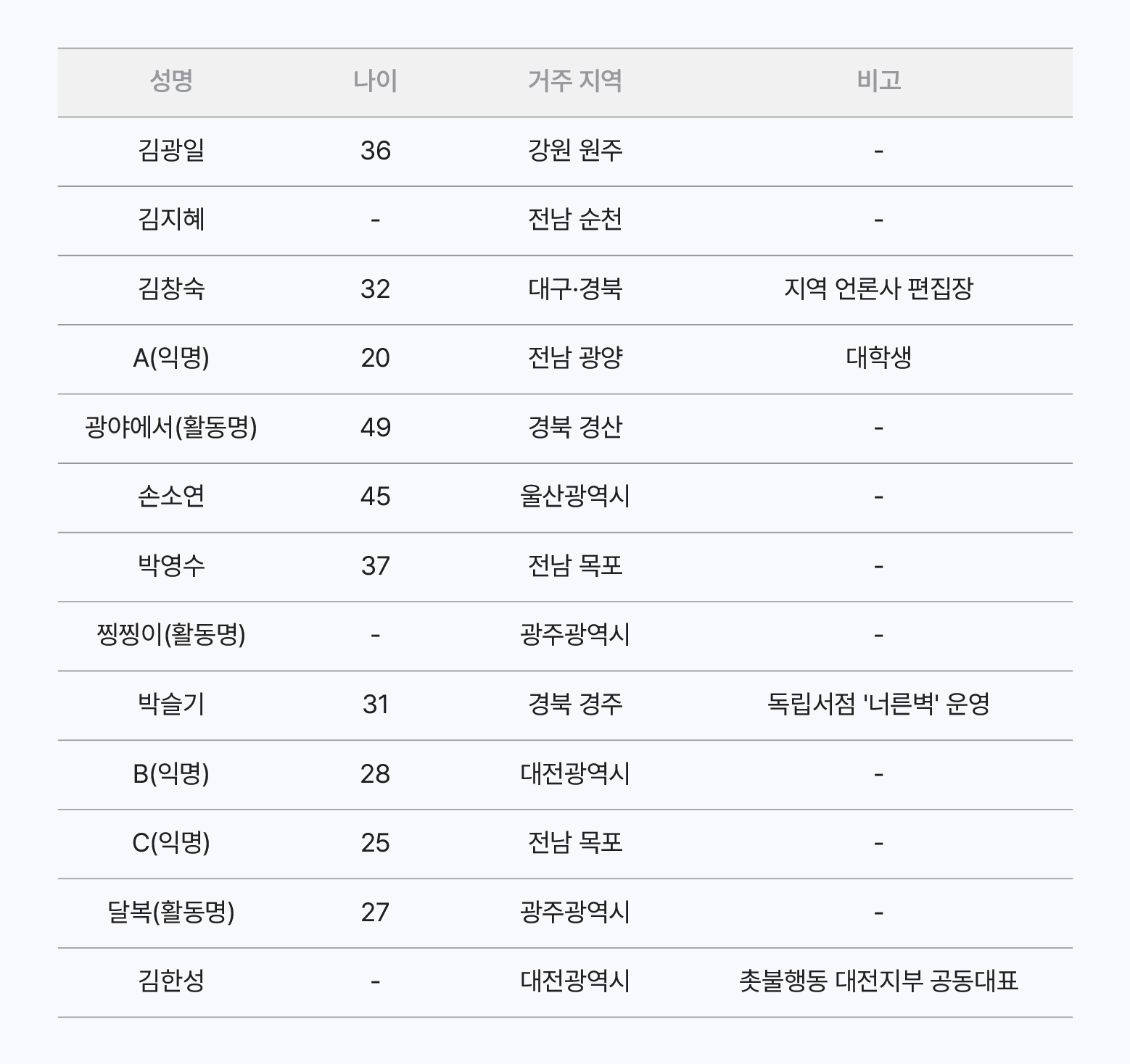 지역 집회에 참여한 시민들은 각자의 방식으로 연대를 경험했다. 손소연 씨는 지역 집회의 경험을 통해 “내가 사는 지역에도 같은 생각을 하는 사람들이 있다는 걸 확인하고 안도감을 느낄 수 있었다”며, “서울까지 가지 않고도 가까운 곳에서 연대할 수 있어서 좋았다”고 말했다. 박영수 씨는 “서울에서 열리는 집회에 비해 지역 집회가 규모도 작고 열기도 덜한 것은 사실”이지만, “작은 도시인 목포에서 집회가 열리고 시민이 모인다는 것 자체에 큰 의미가 있었다”는 소회를 밝혔다.