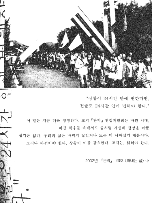 교지가 필요하지 않은 시대입니다. 필요하지 않은 것을 만들려는 이가 없고, 만들더라도 읽는 이가 없고, 읽는 이가 없으니 편집실 문을 두드리는 이가 없습니다 ―〈관악〉 종간사