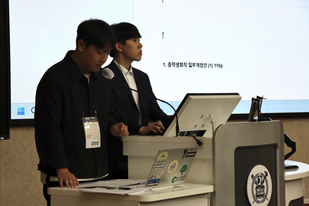 9월 9일 오후 7시 열린 2025 하반기 정기 전체학생대표자회의(전학대회)에서 총학생회칙(회칙) 개정안 3개가 가결됐다. 김민규 총학생회장(조선해양공학 21)은 9월 11일 개정된 회칙을 공포했다. 변경된 회칙은 ▲학생회비 배분 방식 변경 ▲총학생회장 권한·견제구도 명확화 ▲TF 인준 절차 간소화·회계감사위원회 운영 등을 포함한다.