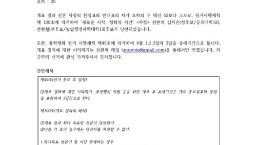 선본 ‘자정’ 제62대 서울대학교 총학생회 선거 당선
